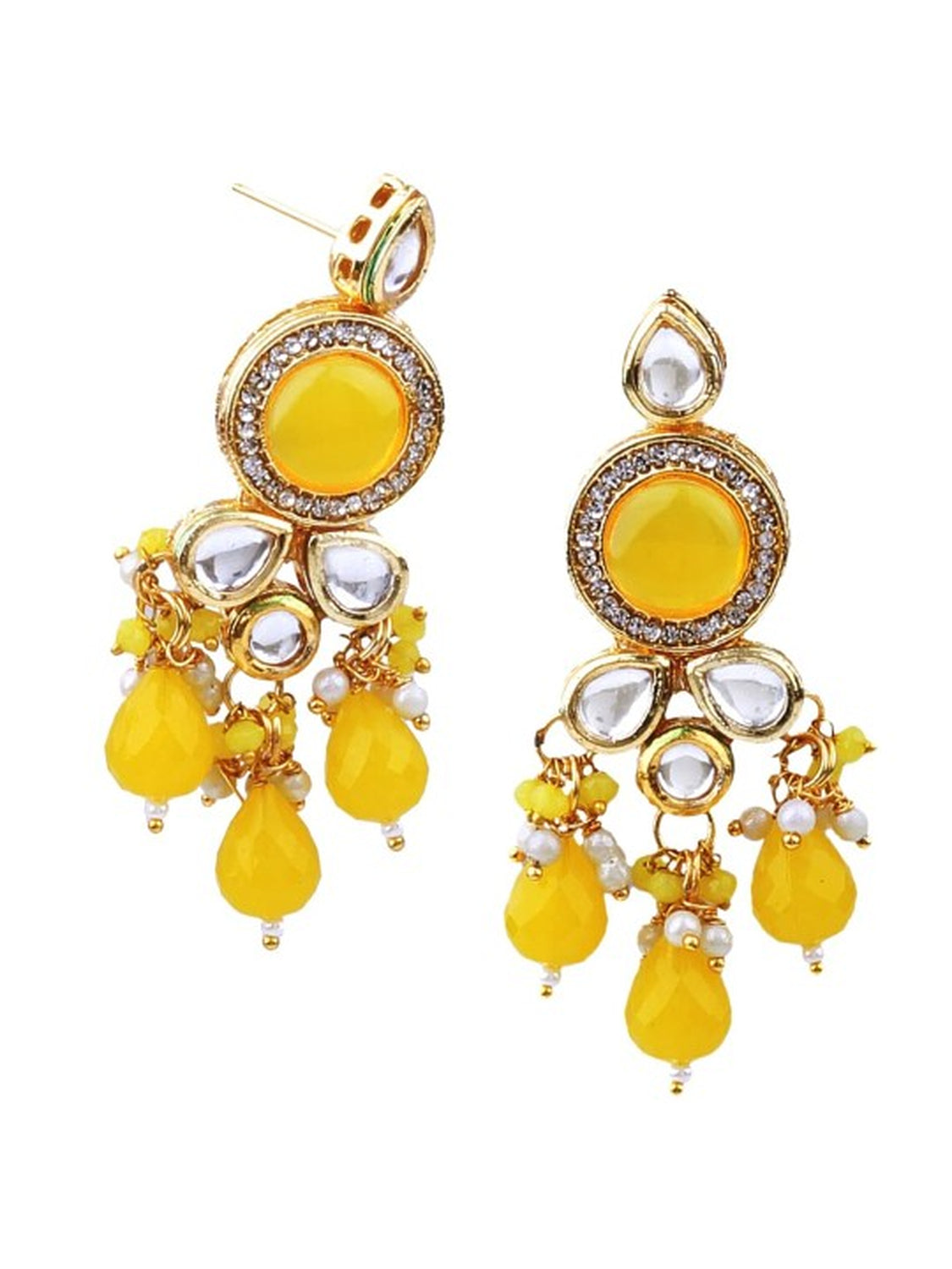 Jewel City Gold-Plated Handcrafted Kundan Yellow Bead Ethnic Jewelry Set – Traditional Necklace & Earrings for Party & Festival Wear