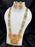 Jewel City Temple Design Gold-Plated Beaded Necklace & Earring Set with Green Gemstones - Traditional Handcrafted Ethnic Jewelry
