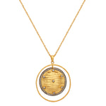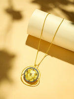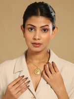 18k Gold-toned round stone setting pendant, gold-plated, has minimal chain & zircon details with textured surface on pendant. Secured with a lobster closure.