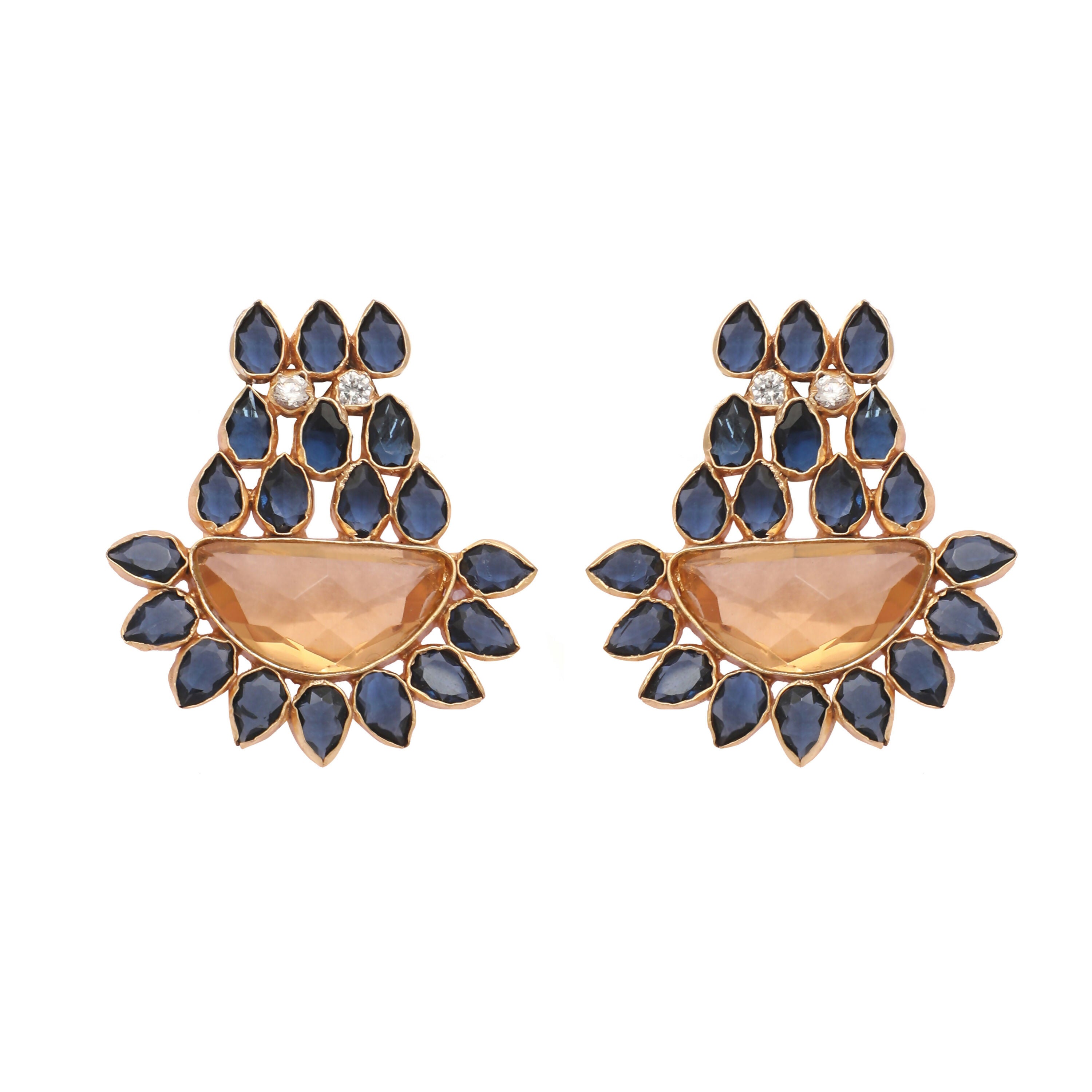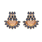22k Gold-toned contemporary shaped stud earrings, gold-plated, has crystals stone studded details. Secured with a post and back closure.
