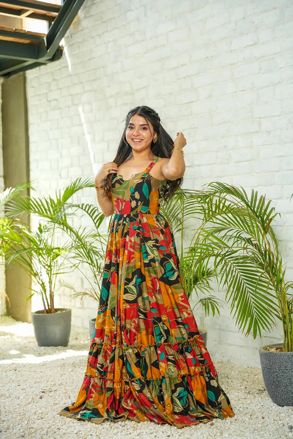 Sonakshi Women's Multicolor Rayon Digital Print Full Round Flair Anarkali Gown Set