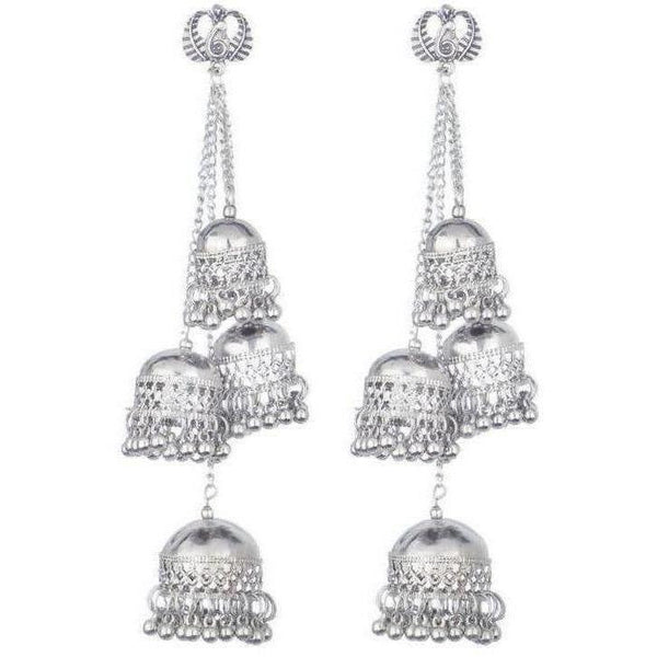 MS Fashion India Traditional Kashmiri Silver Four Jhumka Earrings - Silver - Free