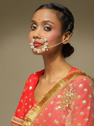 Gold-Polished Kundan Nose Ring - Ruby Raang