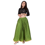 Asmaani Green Color Full Flared Maxi Skirt:The Stylish Full Flared Maxi Skirt made of Satan Fabric with Full elastic at the waist which makes comfo...