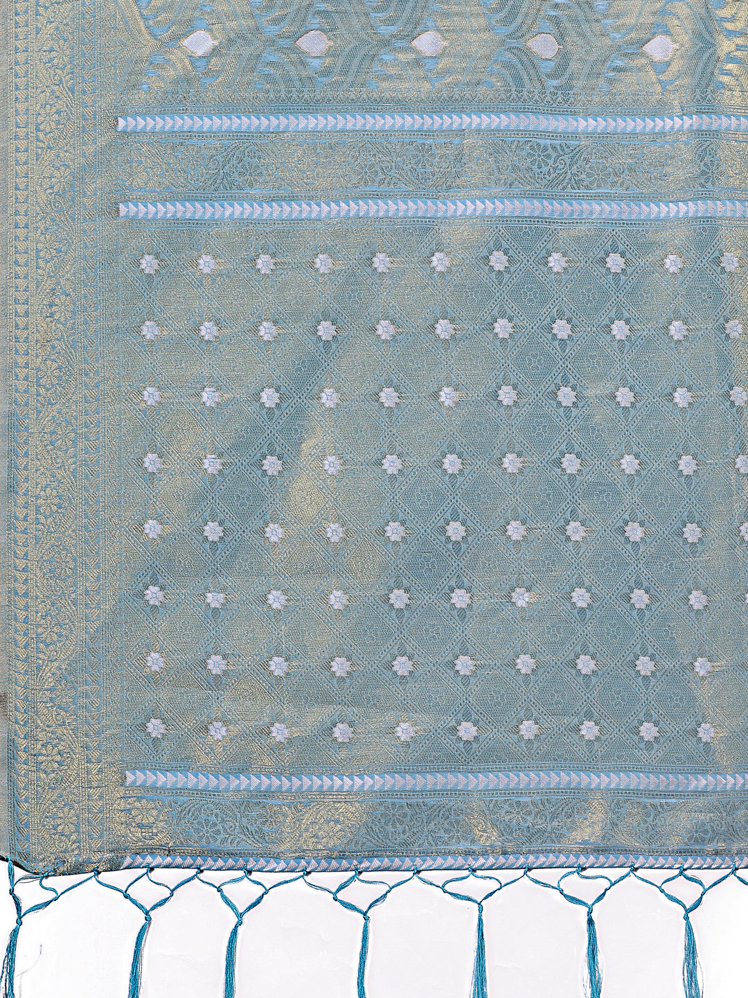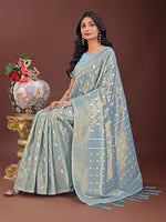 Astita Elegant Sky Blue Linen Saree with Silver Zari Butta & Pallu - Daily Wear | Festive Look | Soft Feel - Distacart