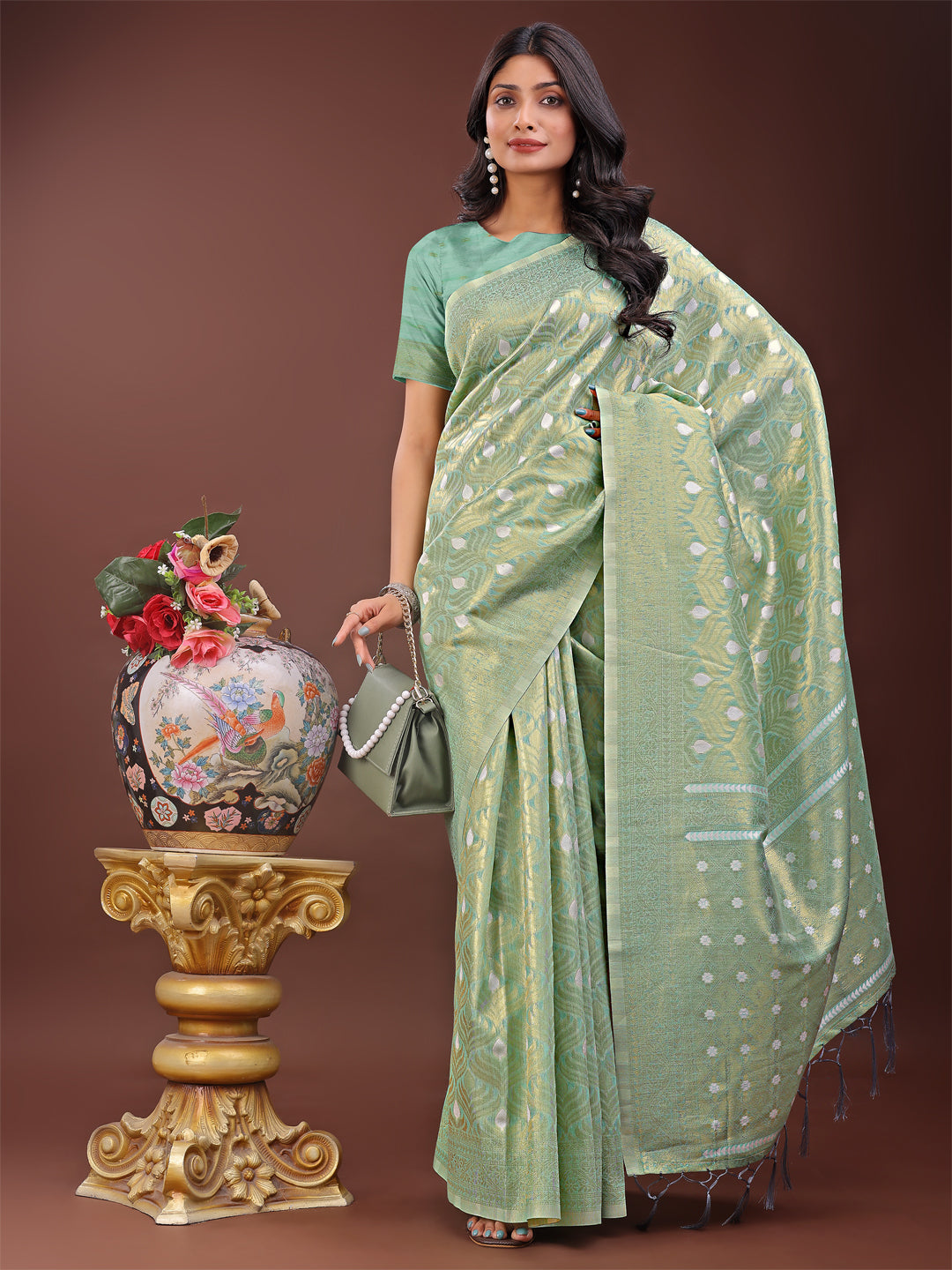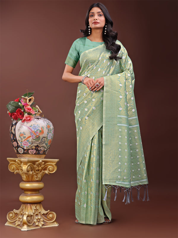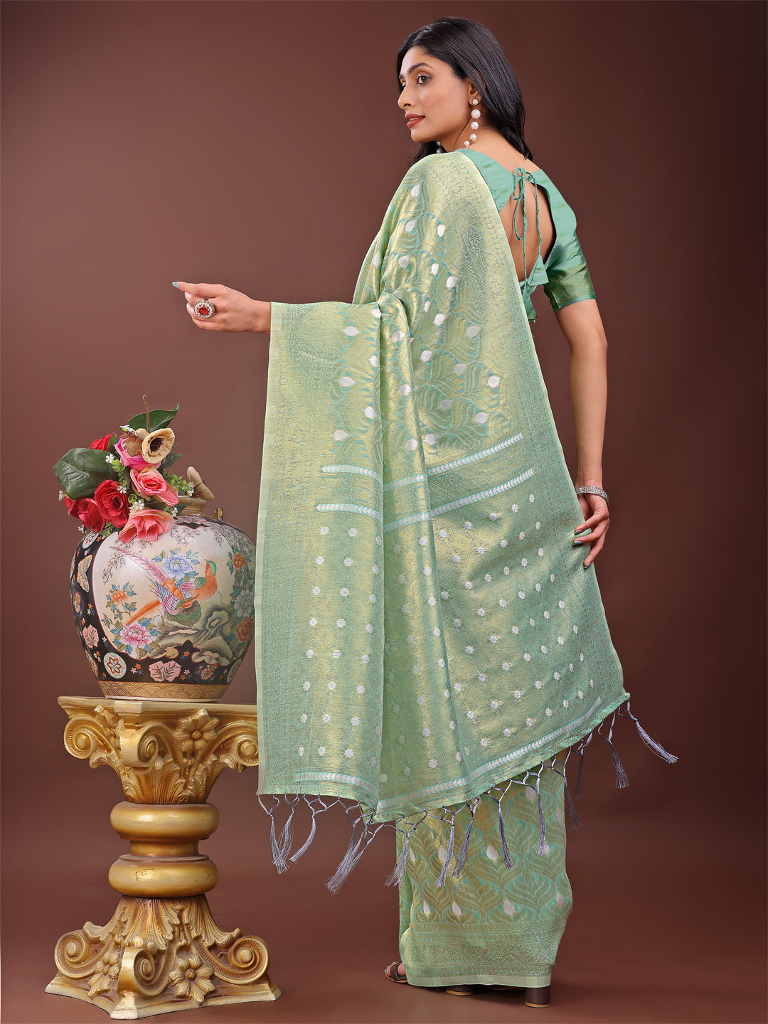 Astita Elegant Teal Linen Saree with Silver Zari Butta & Pallu - Daily Wear | Festive Look | Soft Feel - Distacart