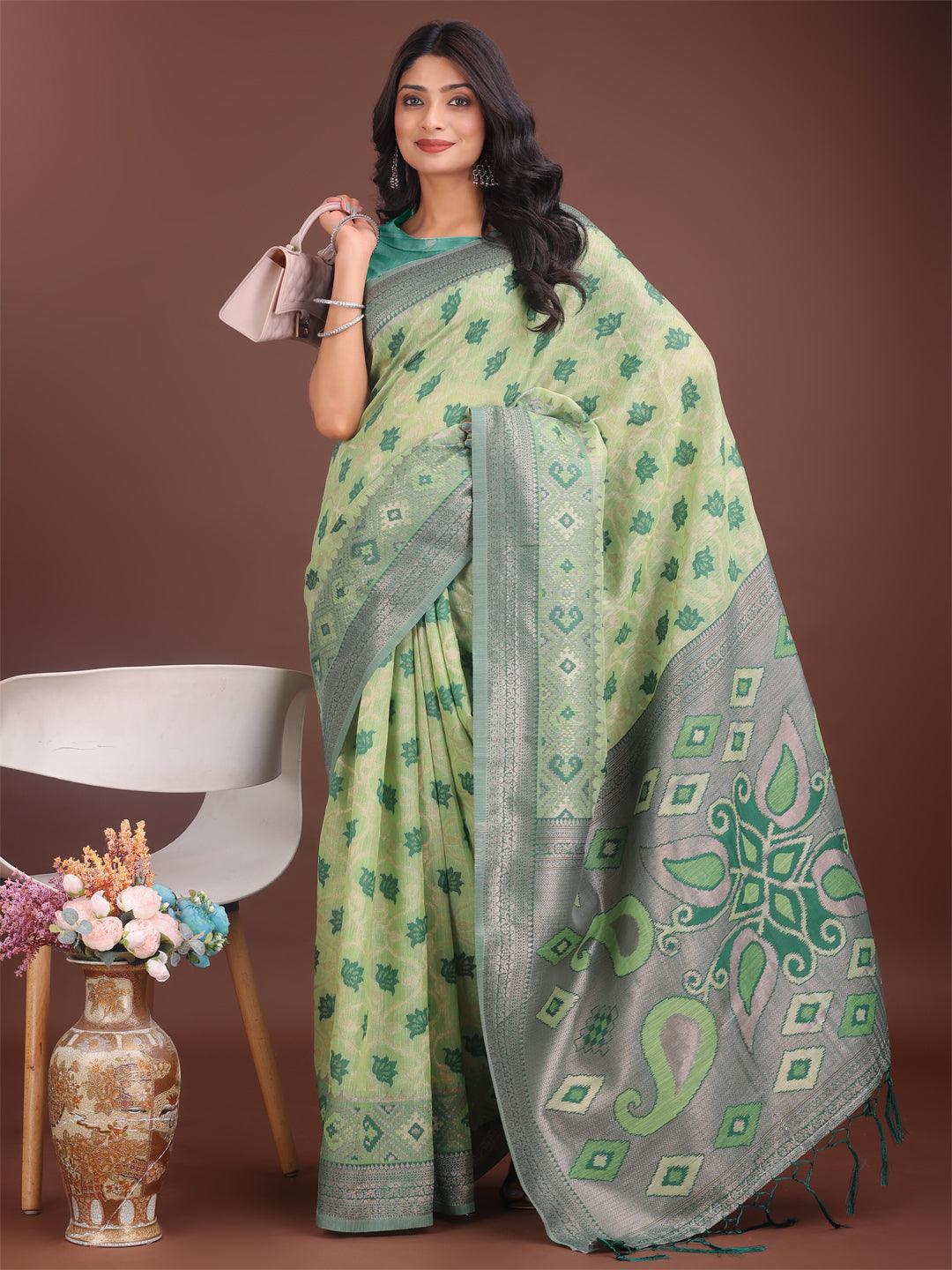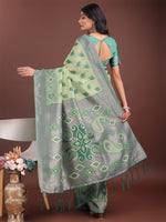 Astita Stylish Light Green Linen Cotton Saree with Woven Design - Lightweight Elegance for Everyday Grace - Distacart