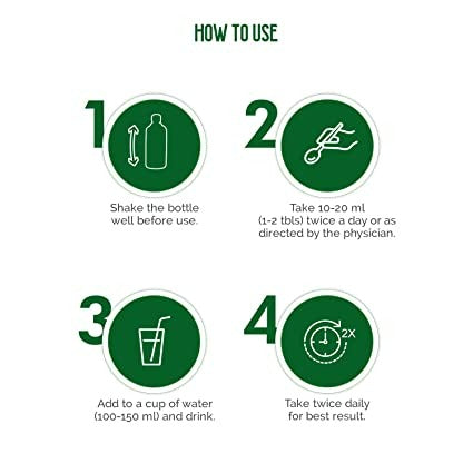 • Add 10-20ml juice with a cup of water (100ml- 150ml) and drink twice a day.