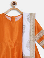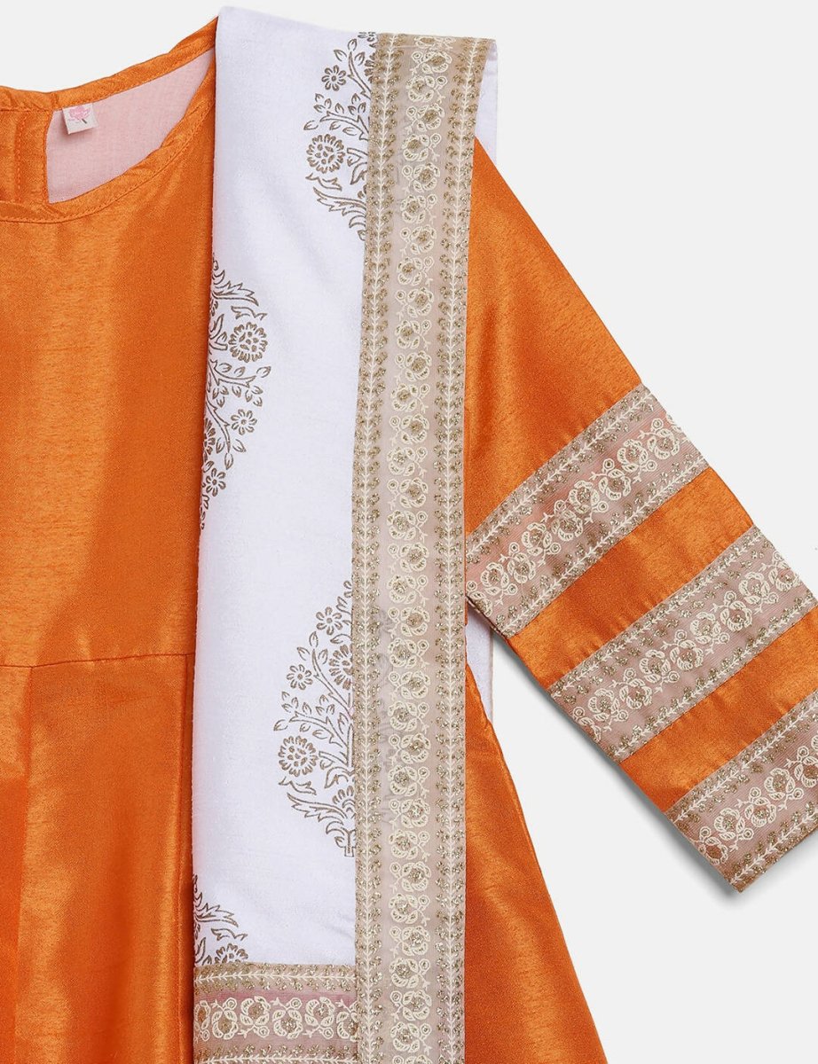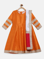Ahalyaa Orange Poly Silk Anarkali Kids Kurta With Dupatta Set For Girls