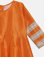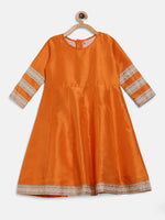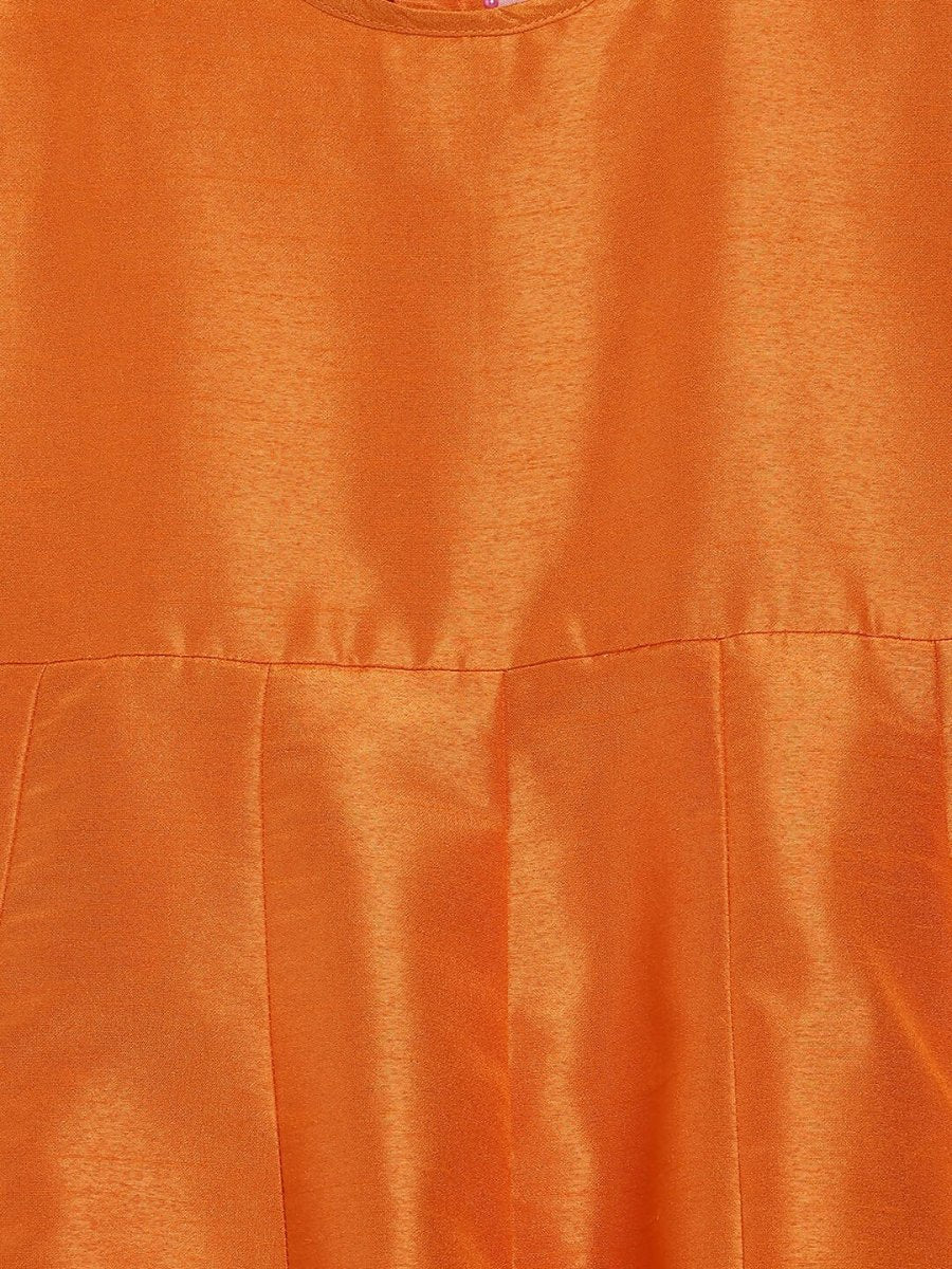Ahalyaa Orange Poly Silk Anarkali Kids Kurta With Dupatta Set For Girls - 2-3Y