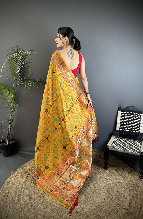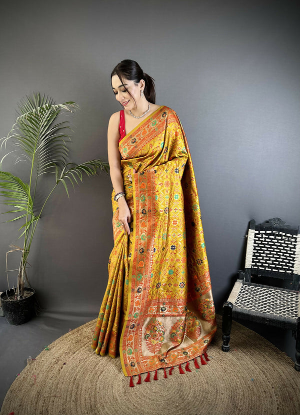 Joban Fashion Golden Yellow Banarasi Soft Silk Woven Saree
