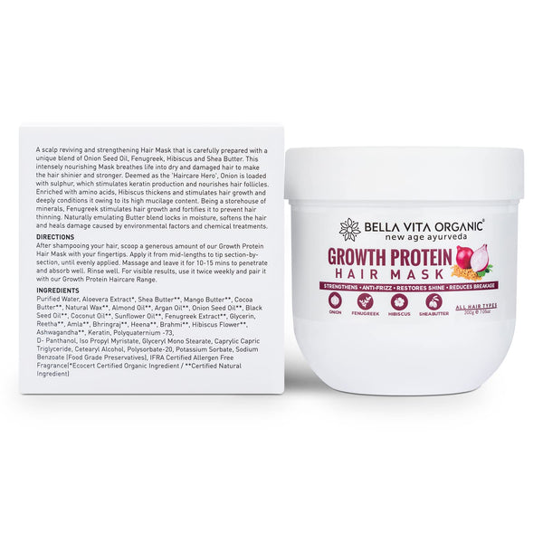Bella Vita Organic Growth Protein Hair Masque Growth Protein hair mask is the best natural hair mask for hair fall control, dandruff, & damage....