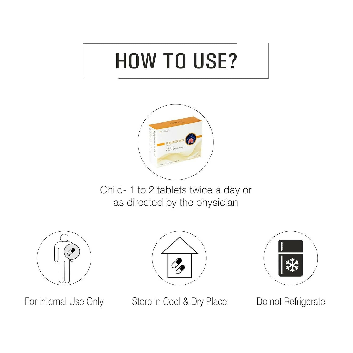 Bio Resurge Life Pulmosurg Ayurvedic Cough and Asthma Relief TabletsHow To Use:Adult – 2 tablets twice a day with lukewarm water / Children – 1 tab...
