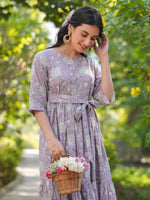 Janasya Light Cotton Floral Tiered Dress Top Fabric: Cotton Top Style: Tiered Top Color: Light Top Pattern: Floral Top Neck: Round Neck Top S...