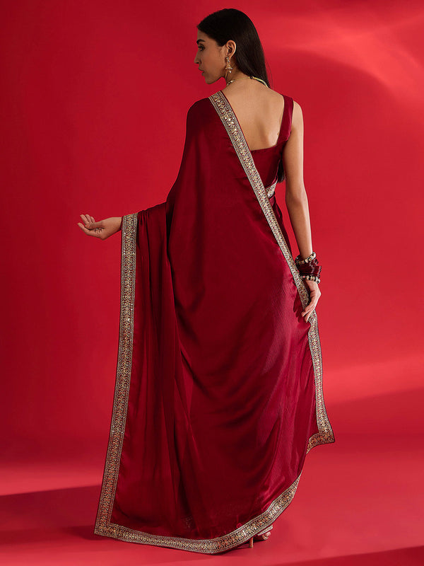 This saree is made from Satin and is Maroon in color. Our Ethnic Sarees comes With Blouse Piece, Which can be Stitched according to Your Taste and Preference. This Saree is Crafted by Skill Craftsmen without Compromising on its Quality. With This Beautiful Design and Fabric, This Saree will fetch You Oodles of Compliments and Praise. saree fit size is 5.5 mtr saree & 0.8 mtr Blouse, Free Size |fabric - chiffon satin 2nd option.