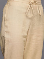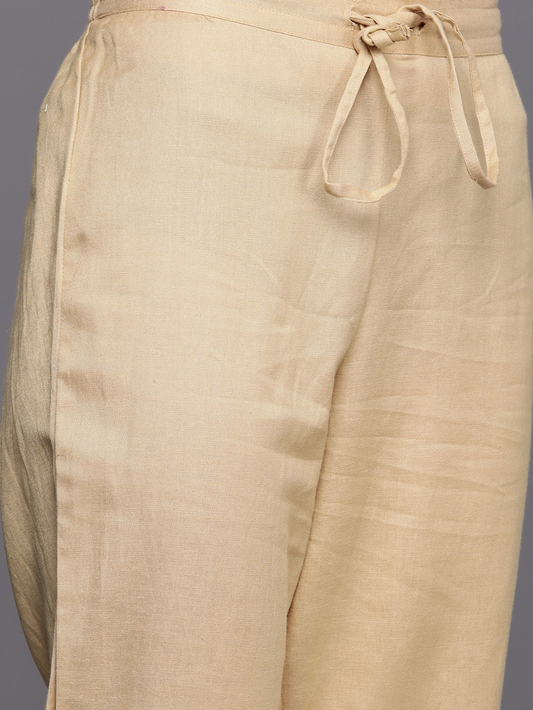 Beige solid trousers, has partially elasticated waistband, drawstring closure