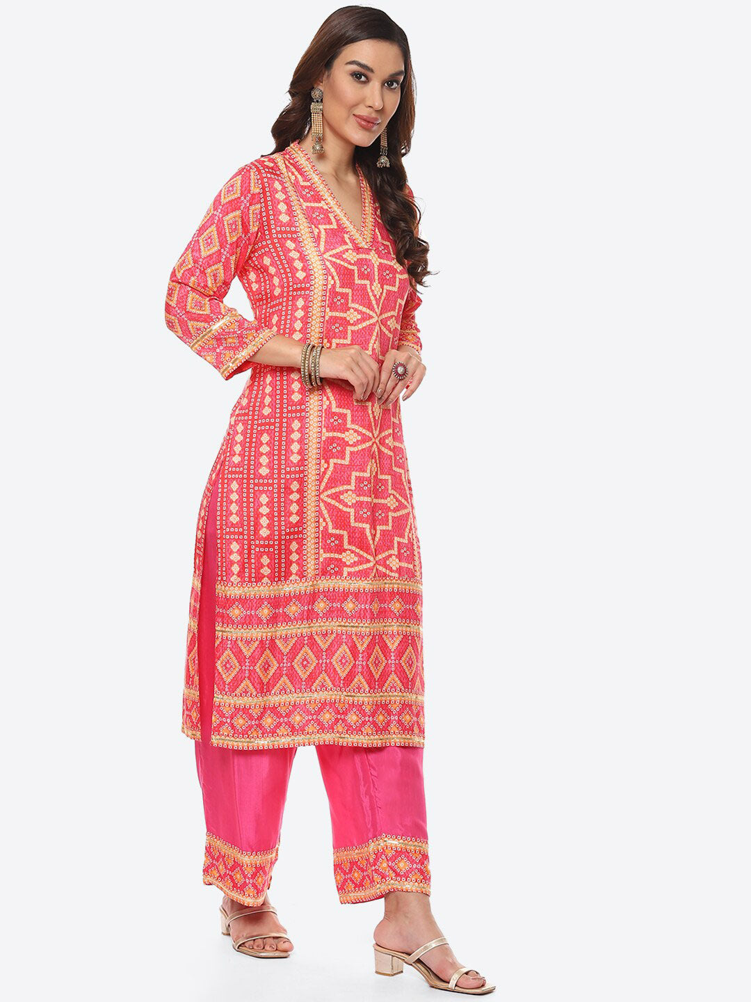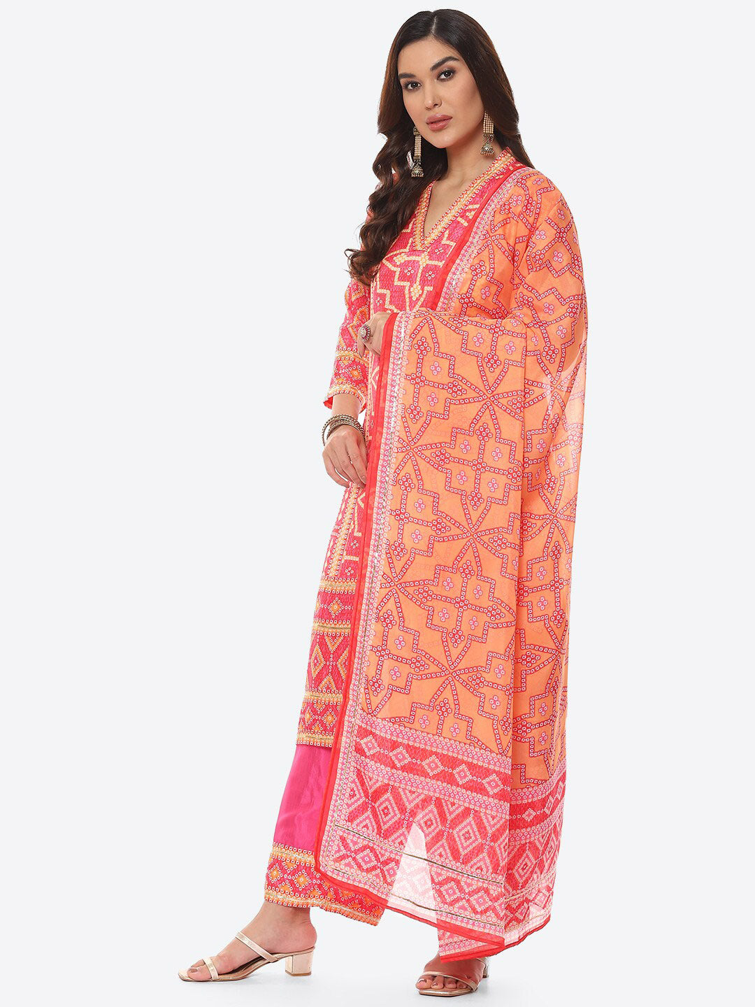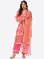 Fuchsia printed Kurta with Trousers with dupatta