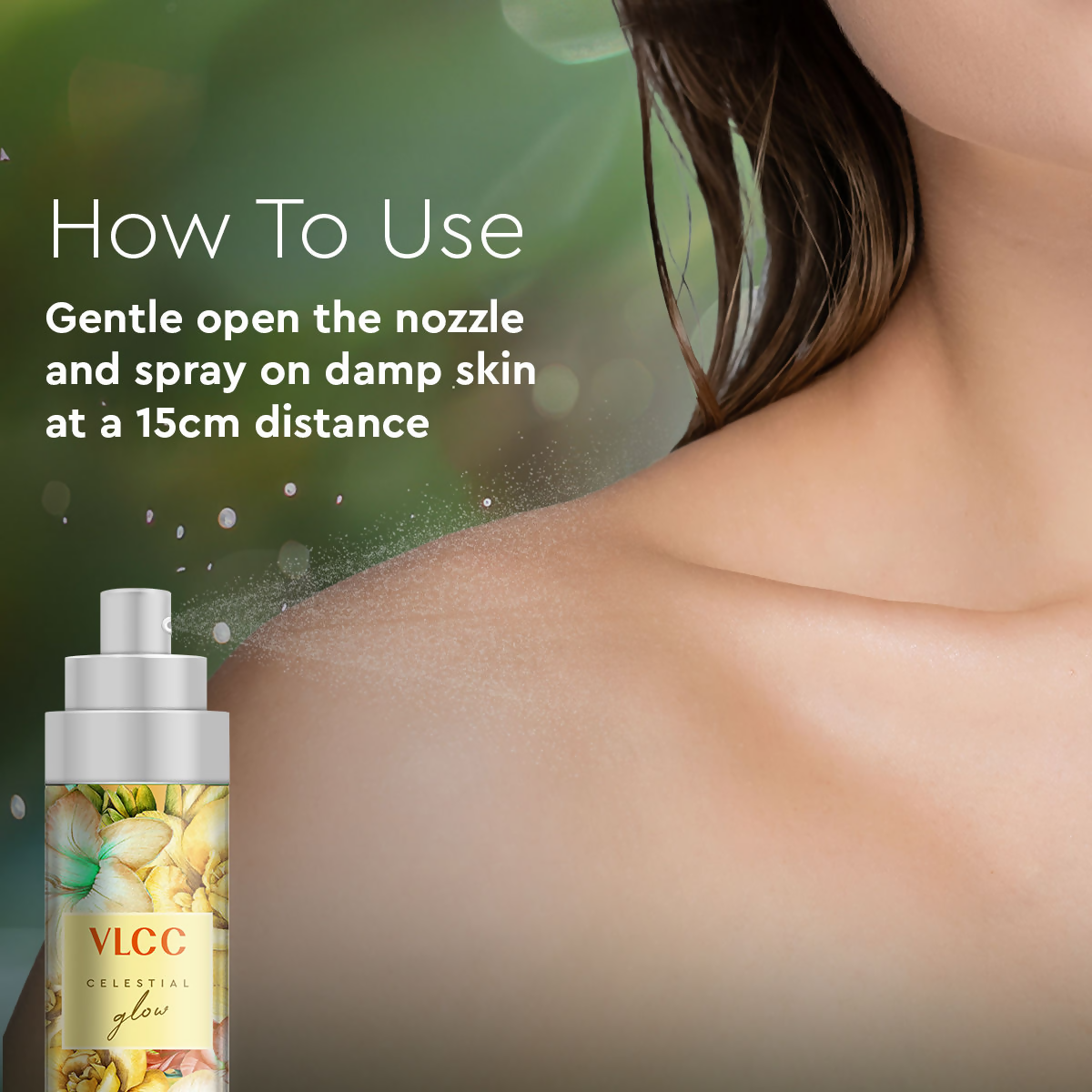 VLCC Body Mist Fragrance - Celestial Glow is a radiant and long-lasting mist infused with a mesmerizing blend of floral and fruity notes. Its refreshing aroma uplifts your senses, leaving you feeling fresh and confident all day. Gentle on the skin, this mist adds a touch of elegance and charm to your daily routine, making it perfect for any occasion.