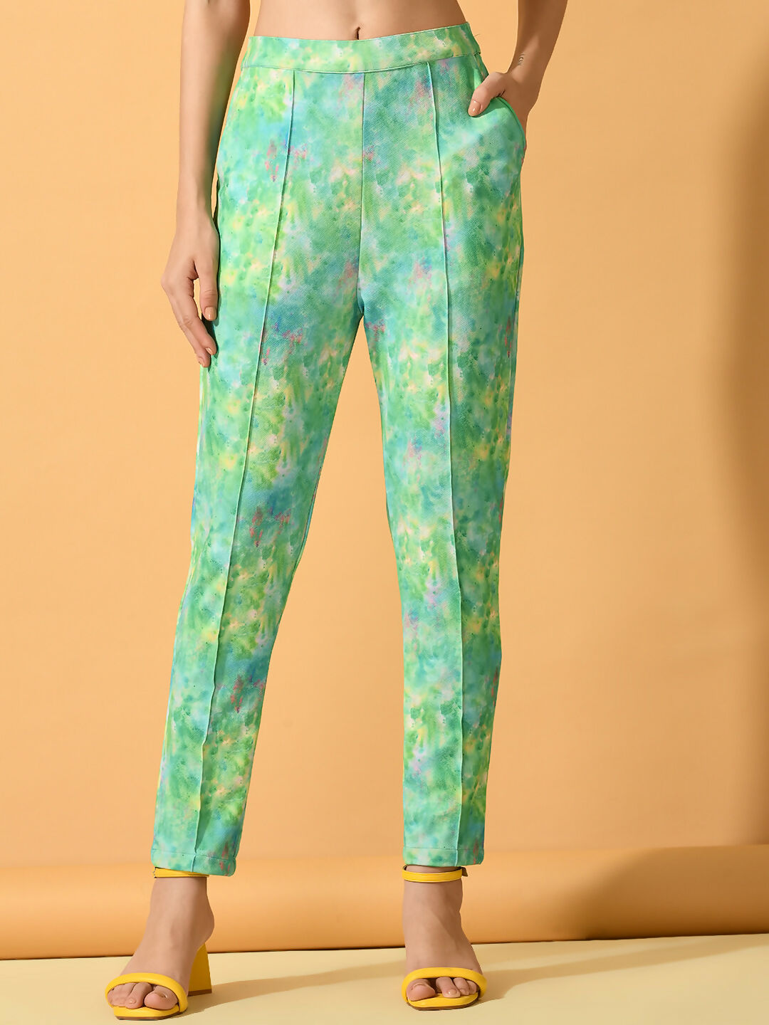 Myshka Women's Multi Slim Fit Party Trouser Color: Multi Bottom Type: Trousers Fabric: Lycra Lining: No Pattern: Printed Length: Ankle Lengt...
