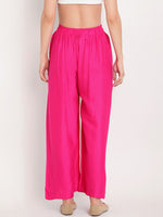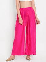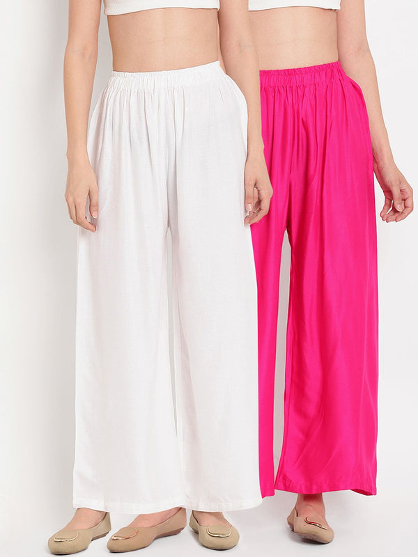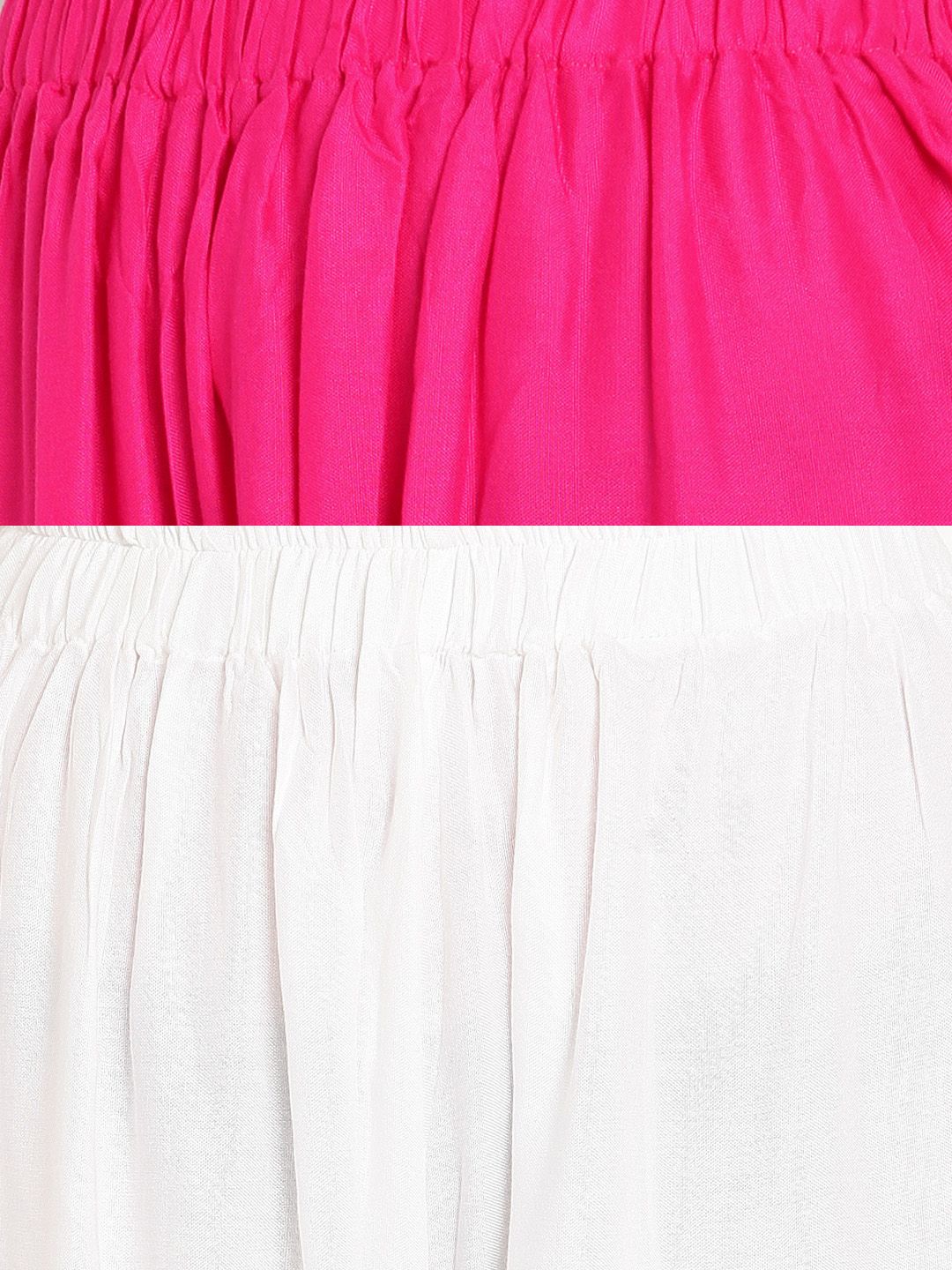 Pack Of 2 White and Pink solid woven flared fit Palazzos, opaque, and slip-on closure