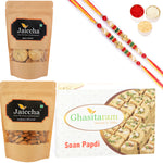 Ghasitaram Soan Papdi, Methi Mathi and Almonds With 2 Pearl Beads Rakhis