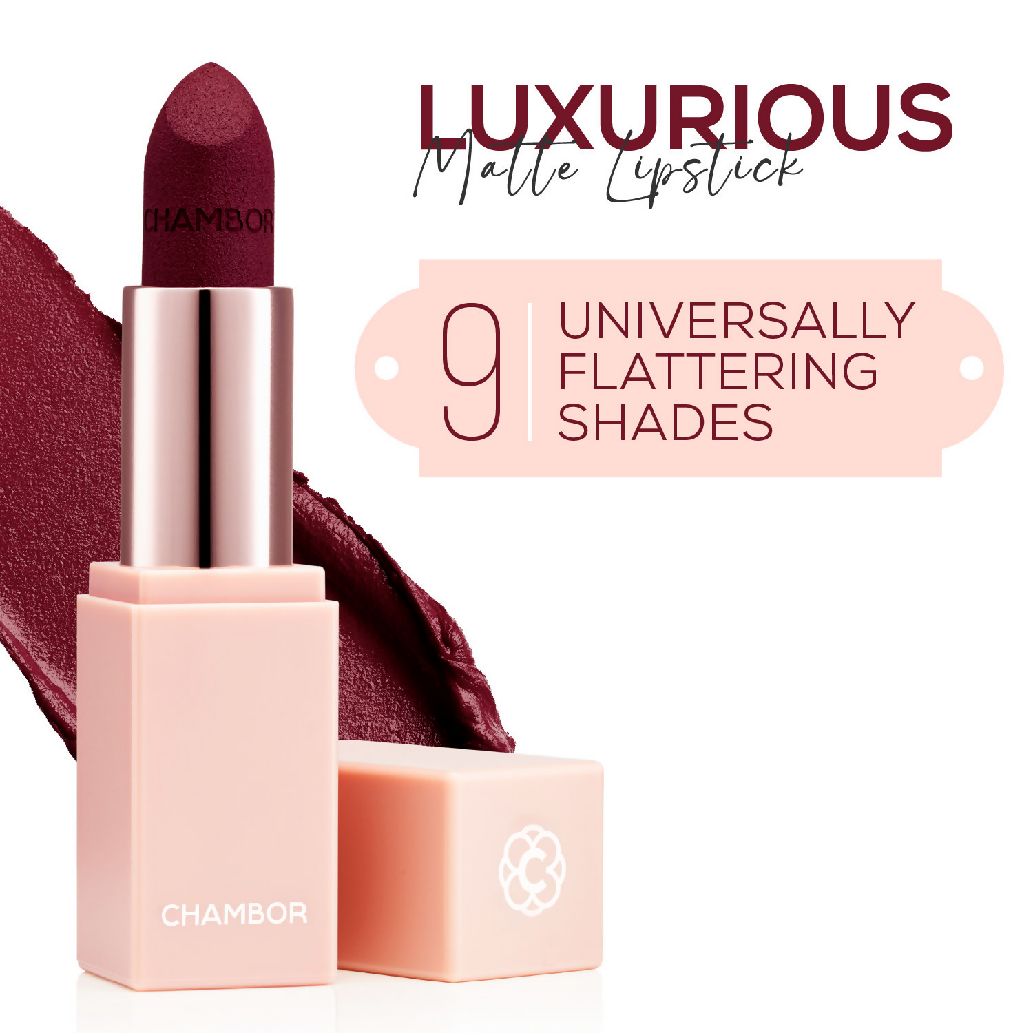 • Chambor’s new Colour Studio Les Universelles lipstick is a stunning, luxe matte collection that celebrates the multifaceted roles of women. Its bold shades are especially designed to enhance and embrace all skin tones and under tones. Each shade highlights feminine expression, reflecting the strength, creativity, and leadership women contribute to the world.Universally Flattering Shades.The vibrant color palette features a uniquely developed shade range, drawing on international and Indian bestseller trends, while carefully developing undertones and hues that will flatter the continental complexion spectrum., with shades that symbolize clarity, warmth, and optimism. Les Universelles playfully celebrates the diverse roles and routines of women in their every day heroism.Finding your match is effortless, choosing from rich, saturated hues that convey sophistication in trending matte effects.