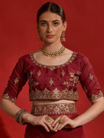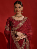 Anouk Maroon & Gold-Toned Embellished Embroidered Pure Georgette Saree