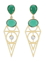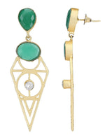 Joban Fashion Women Green Stone Matte Gold Earrings Composition : Brass Size ( Length x Width ) IN CM : 7.5 x 2.5 Primary Color : Green & Gol...