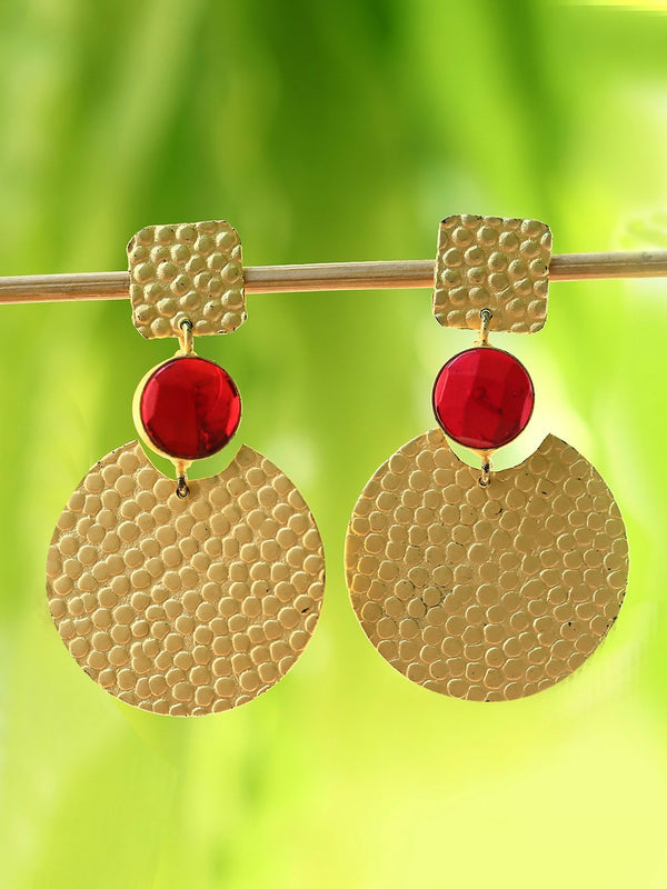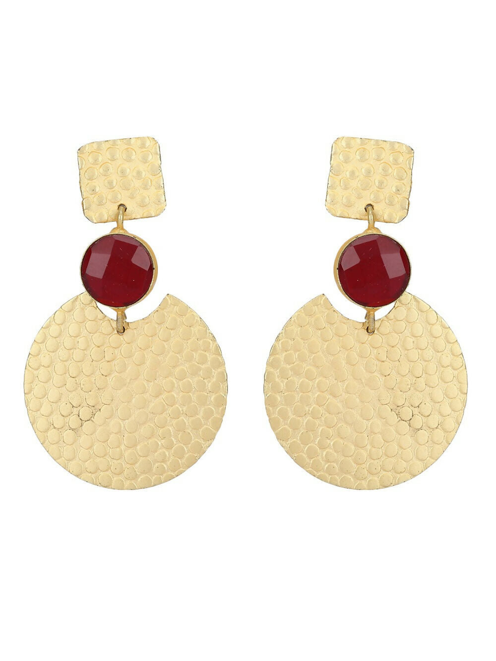 Joban Fashion Women Round Shape Matte Gold Earrings Composition : Brass Size ( Length x Width ) IN CM : 5 x 3 Primary Color : Red & Gold Car...