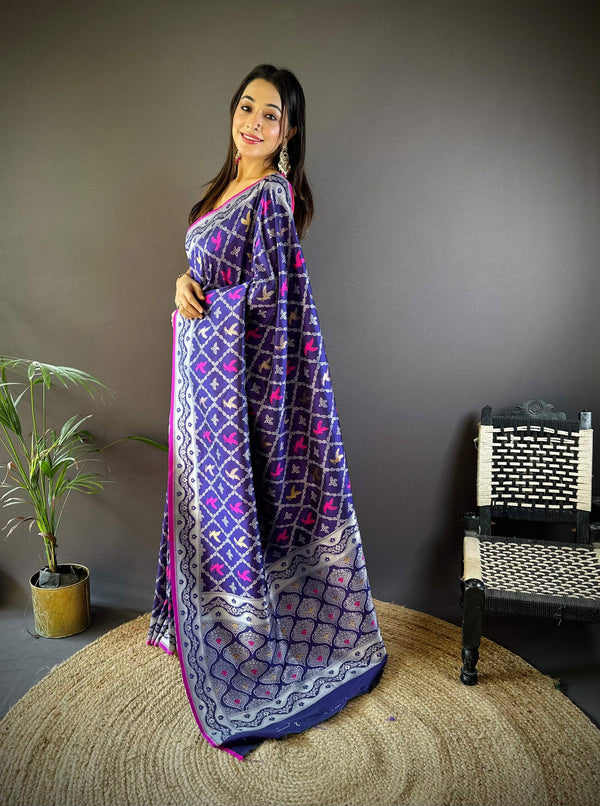 Sonakshi Women's Blue Lichi Soft Silk Zari Weaving Saree with Blouse
