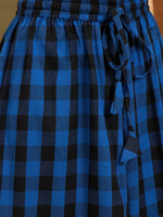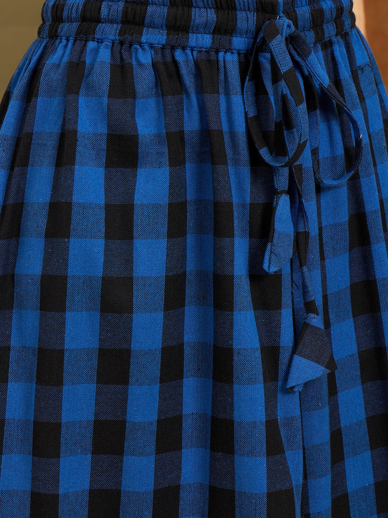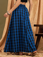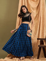 A stunning ink blue and black check skirt that combines depth and sophistication. The color contrast and check pattern offer versatility, making it suitable for both casual and formal outfits, ideal for day-to-night transitions.