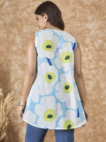 InWeave Skyblue Big Print V Neck Top - Distacart