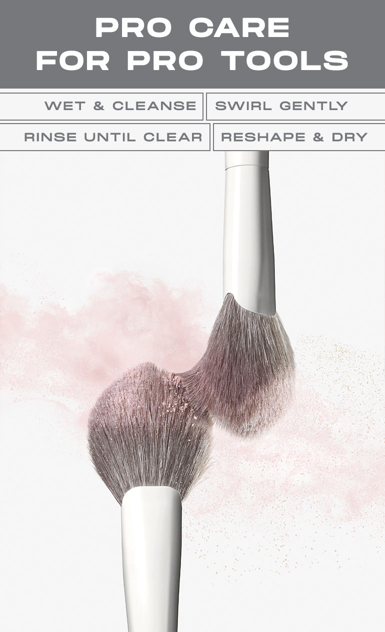Caution: To avoid compromising the construction of your brushes, do not use hot water on them, wet the brush ferrules, or submerge your brushes in water or cleaner.