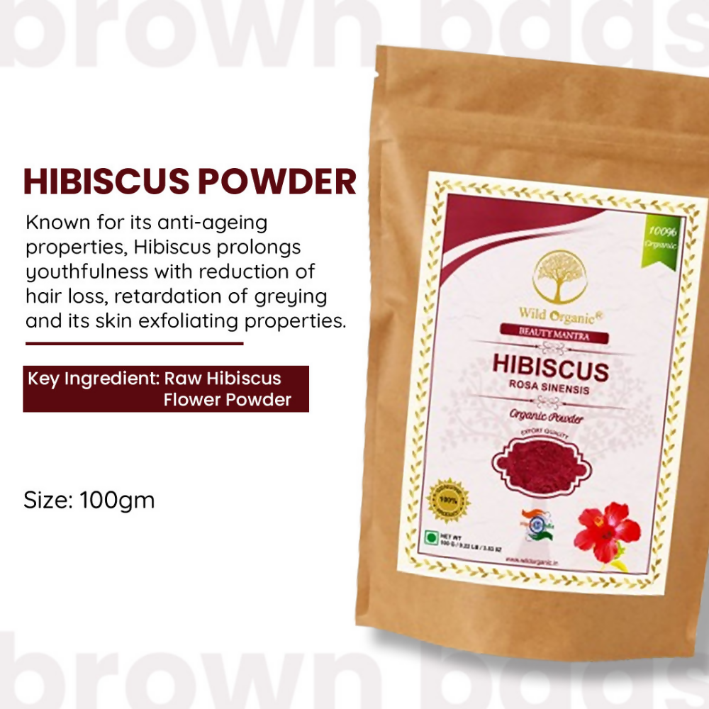 Wild Organic Hibiscus Flower Powder For Skin And Hair Care - 100 gm