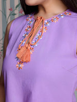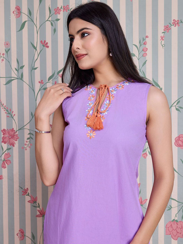 Ode by House of Pataudi Pure Cotton Straight Kurta with Palazzos Product Details Lavender solid Kurta with PalazzosKurta design: Floral Straig...
