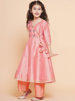 Girls Embroidered Angrakha Kurta with Trousers & Dupatta for Kids - Bhama