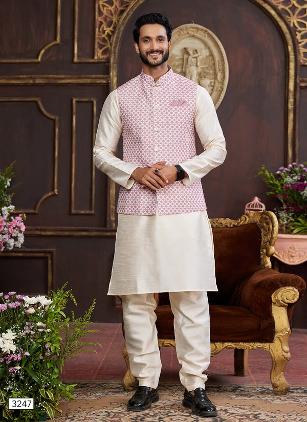 Celebrate in style with this elegant Nehru jacket, beautifully paired with a classic kurta pajama set. Made from superior-quality fabric, this ensemble blends heritage-inspired design with modern refinement. Ideal for weddings, festive occasions, and formal gatherings, it offers unmatched comfort and a polished, distinguished look. Include this versatile outfit in your wardrobe and step into every event with confidence and grace.Legal Disclaimer : Product color may slightly vary due to photographic lighting sources or your monitor settings.