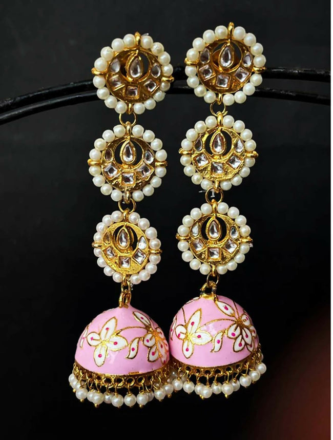 Joban Fashion Women White Meenakari Dome With Three Tops Drop Earring