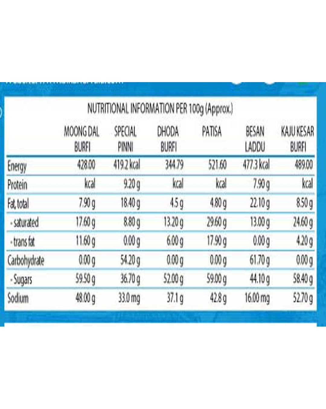 Note: Milk, Wheat, Coconut and Nuts (Cashew Nuts, Almond and Pistachio)May also contain traces of Peanuts, Soya, Sesame, and Oats.