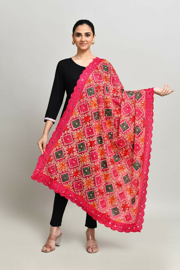 Joban Fashion Multi Color Cotton Embroidery Work Phulkari Dupatta