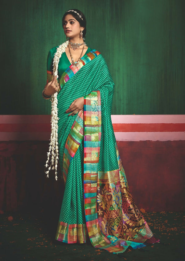 Joban Fashion Tushar Silk Bottle Green Colored With Zari Border And Designer Pallu Saree