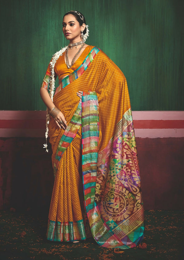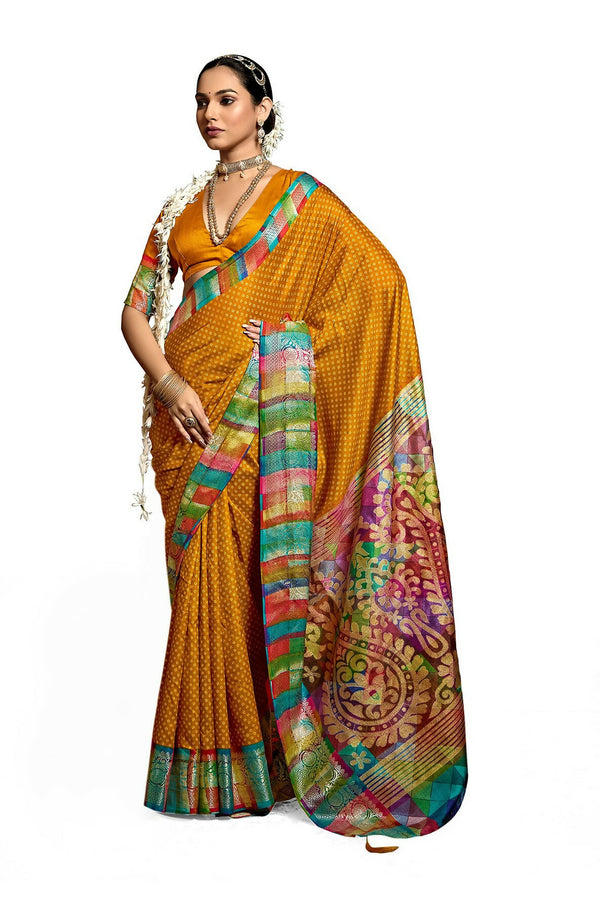 Joban Fashion Tushar Silk Mustard Colored With Zari Border And Designer Pallu Saree