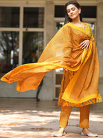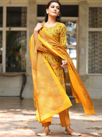 Mustard yellow & green printed kurta with trousers with dupatta
