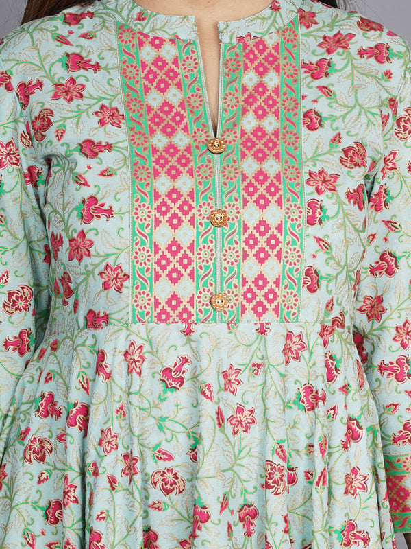 Kalini Women Sea Green & Pink Floral Printed Anarkali Kurta