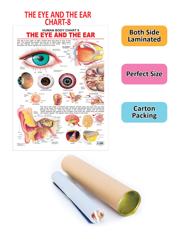 The Eye and the Ear educational wall chart is ideal for all science enthusiasts and students of elementary grades. It can be easily displayed on walls of science classrooms, study rooms, or any learning centre and make learning interesting.