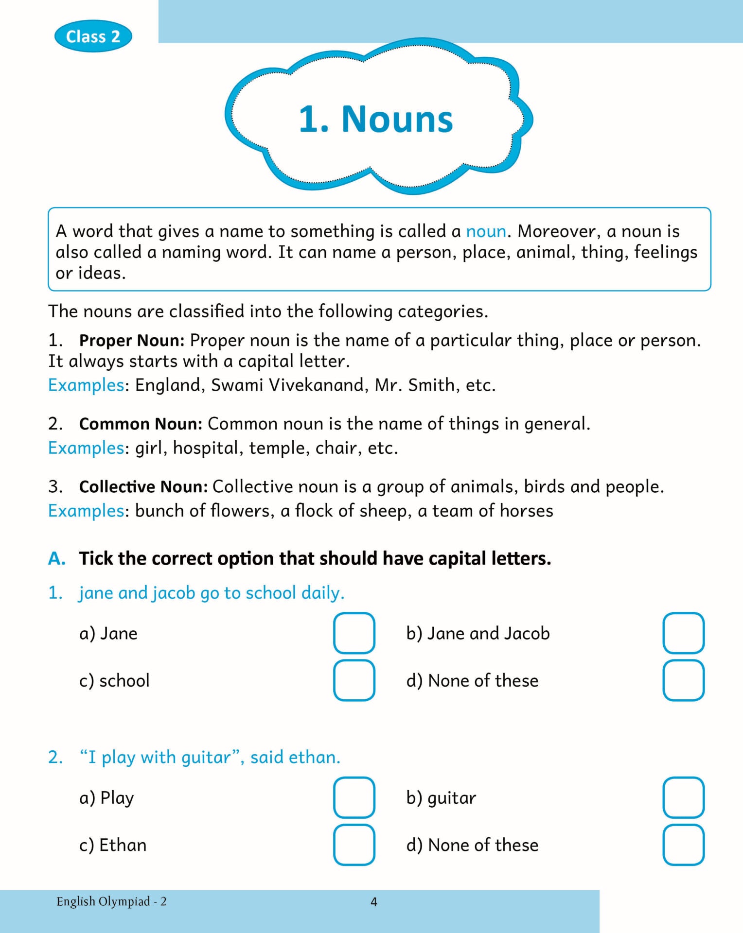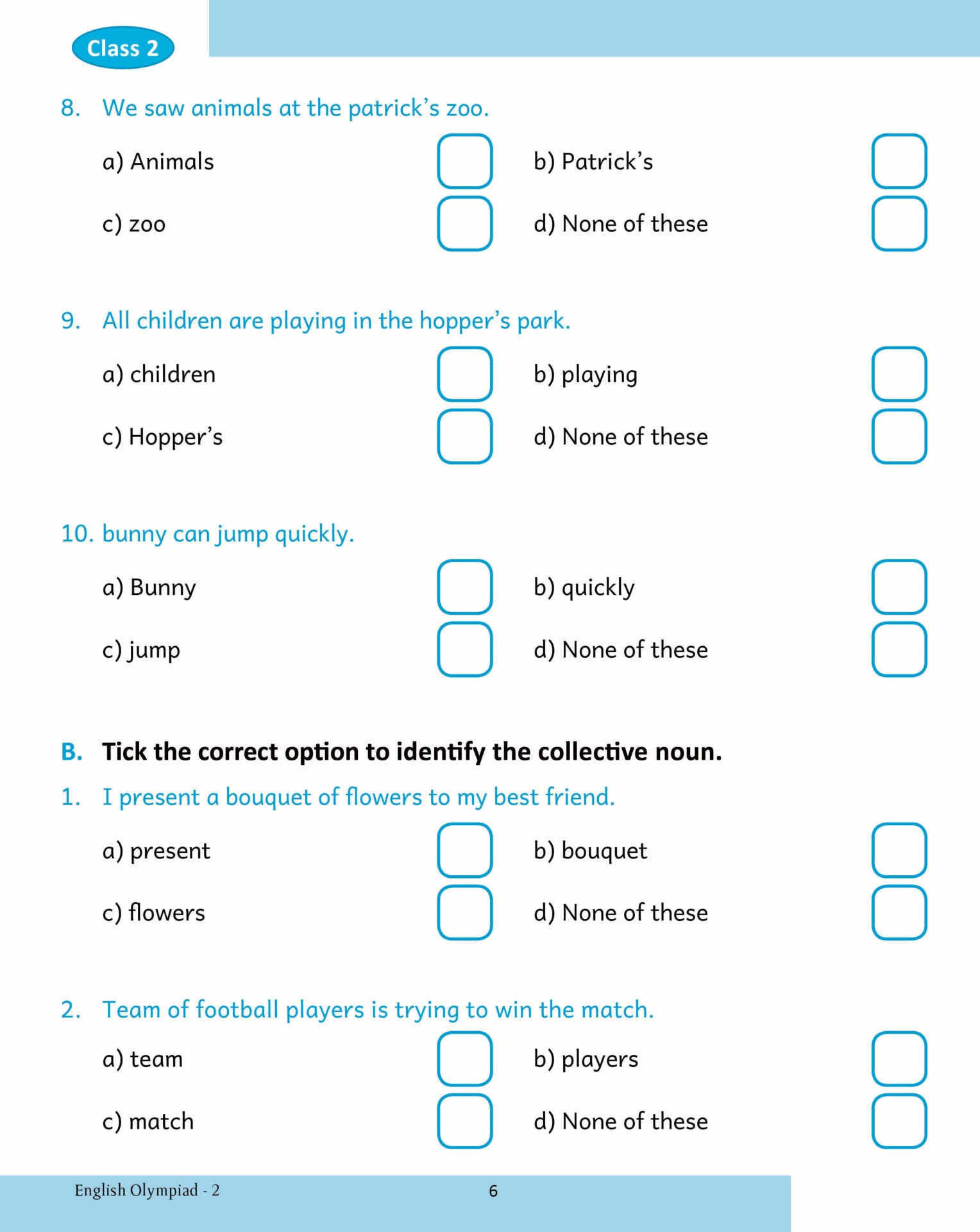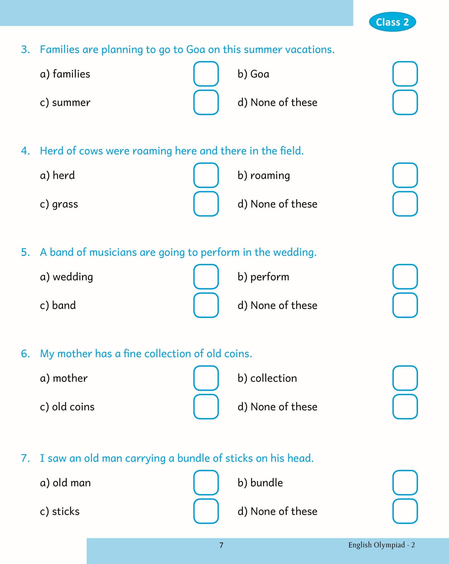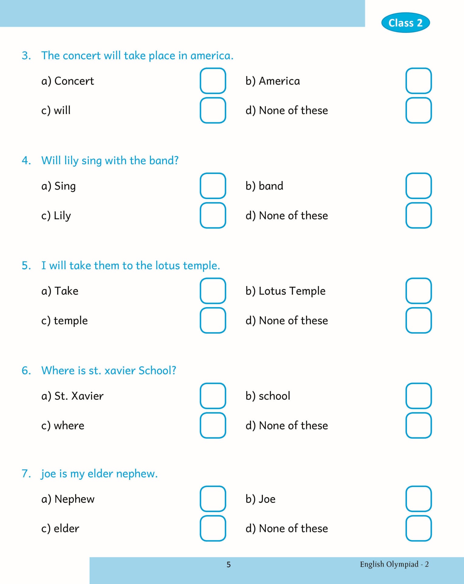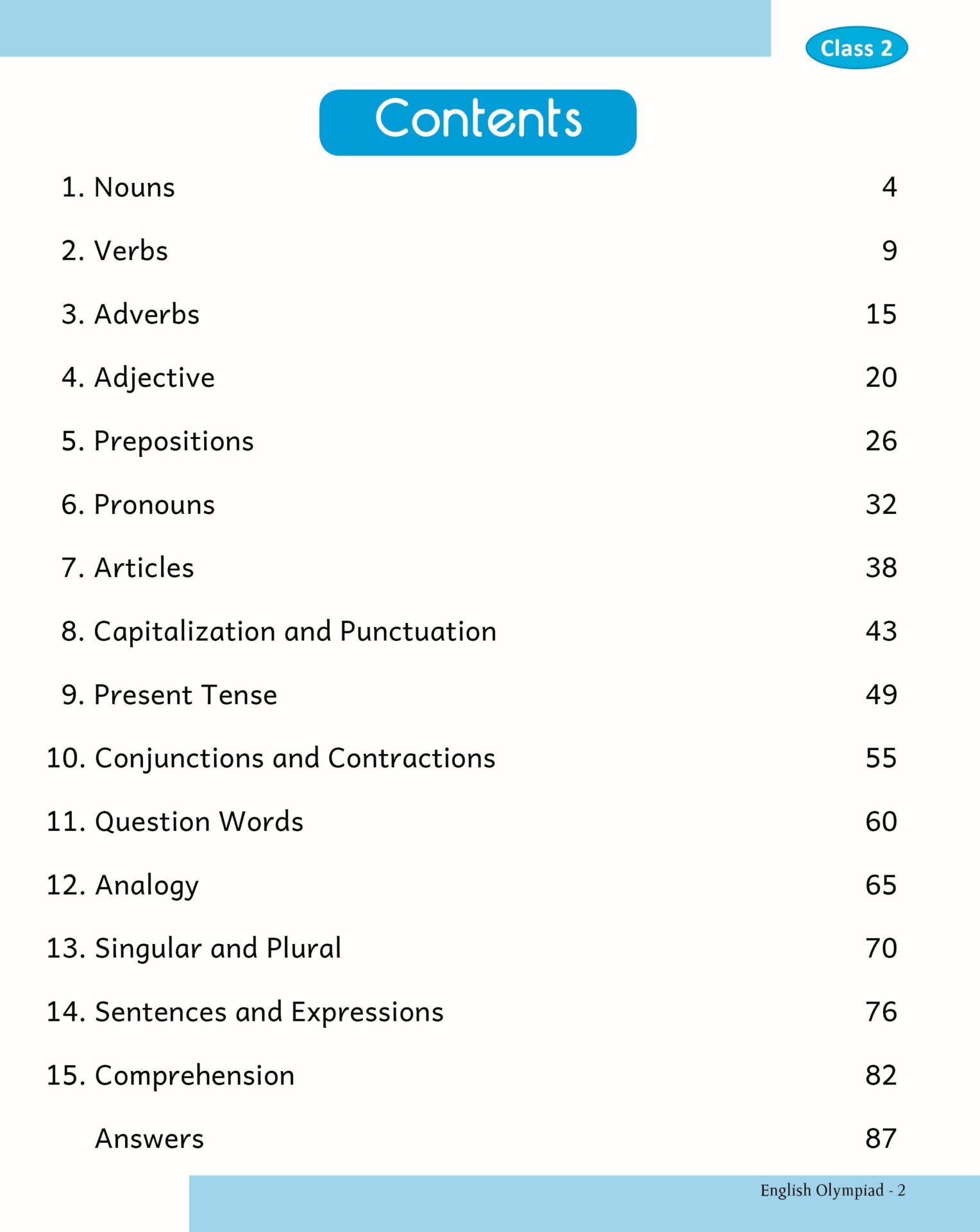 • Olympiad English Series caters to improving the child's listening, speaking, reading and writing skills. Olympiad English series aims at motivating the students to strive for better performance in English. All questions are in MCQ format that tests student's observation, analytical, problem solving and higher-order thinking skills.