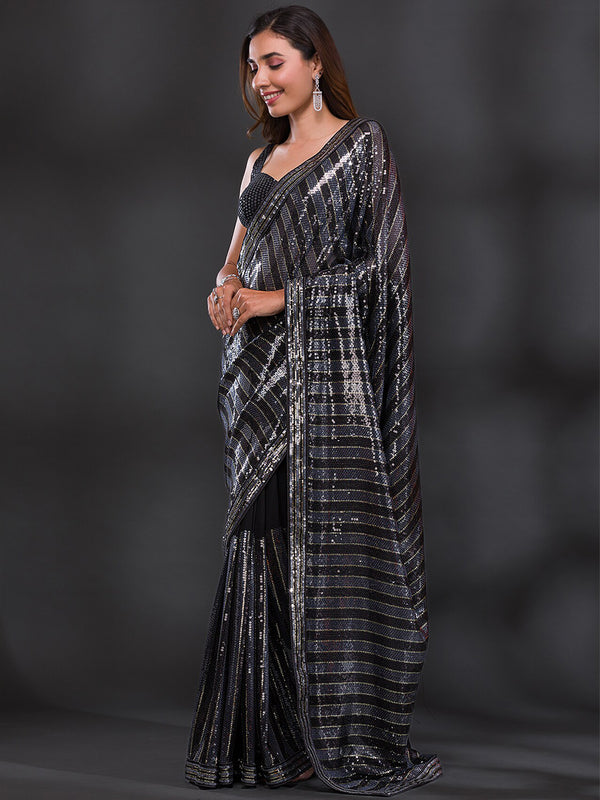 The blouse worn by the model might be for modelling purpose only. Check the image of the blouse piece to understand how the actual blouse piece looks like.
