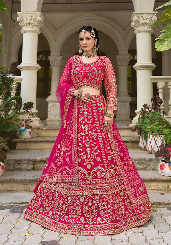 Monjolika Fashion Rani Pink Butterfly Net Embroidered Work Stunning Lehenga For Wedding Season - S-36
