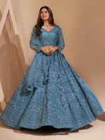 Myra Aqua Blue Heavy Embroidered Designer LehengaAqua Blue Heavy Embroidered Designer Lehenga features a net with silk blouse and lehenga with net ...