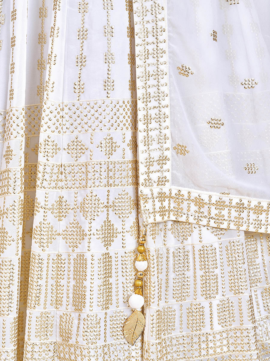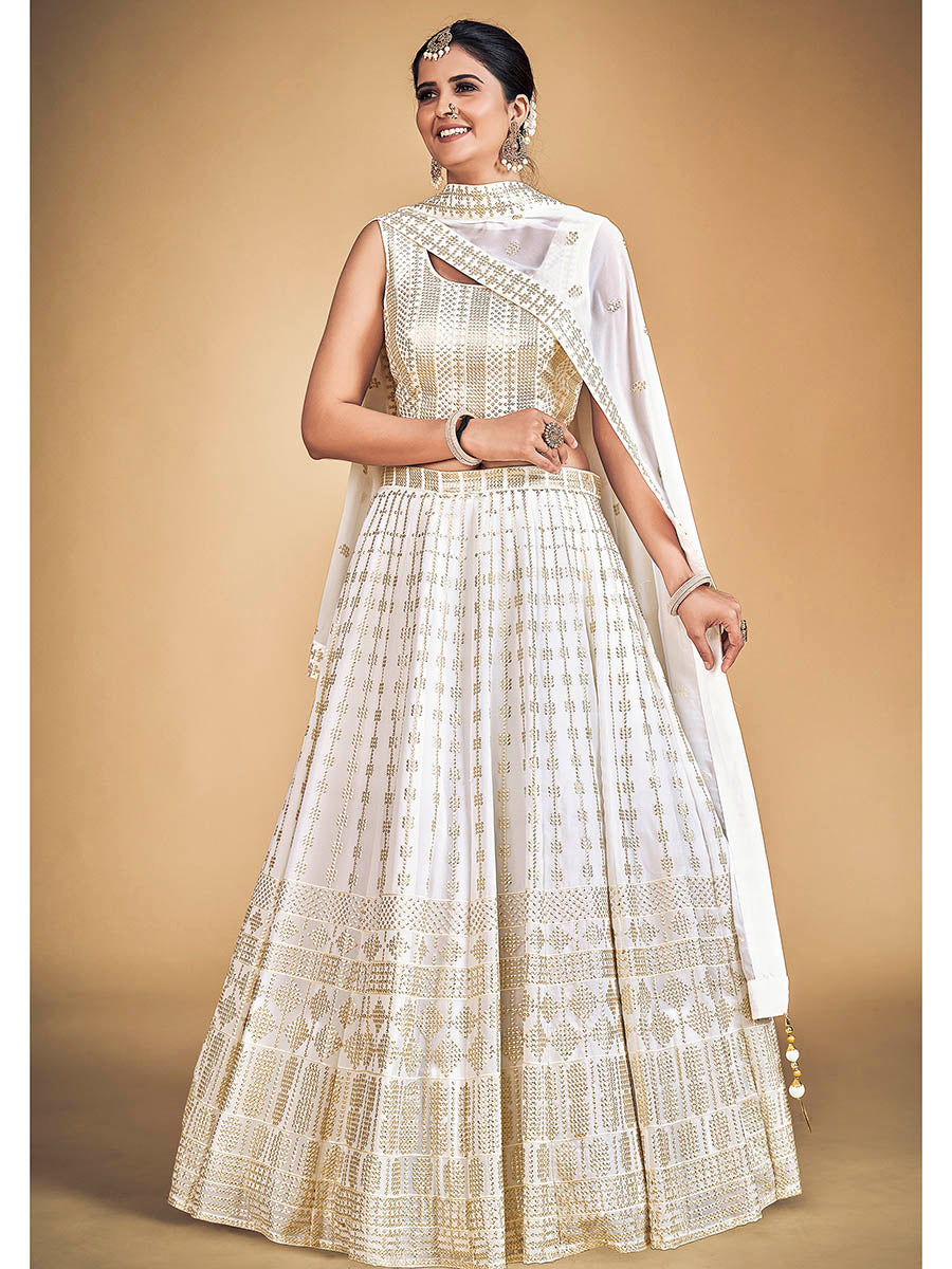 Myra White Georgette Real Georgette Lehenga CholiWhite Georgette Real Georgette Lehenga Choli features a georgette lehenga and georgette choli with...